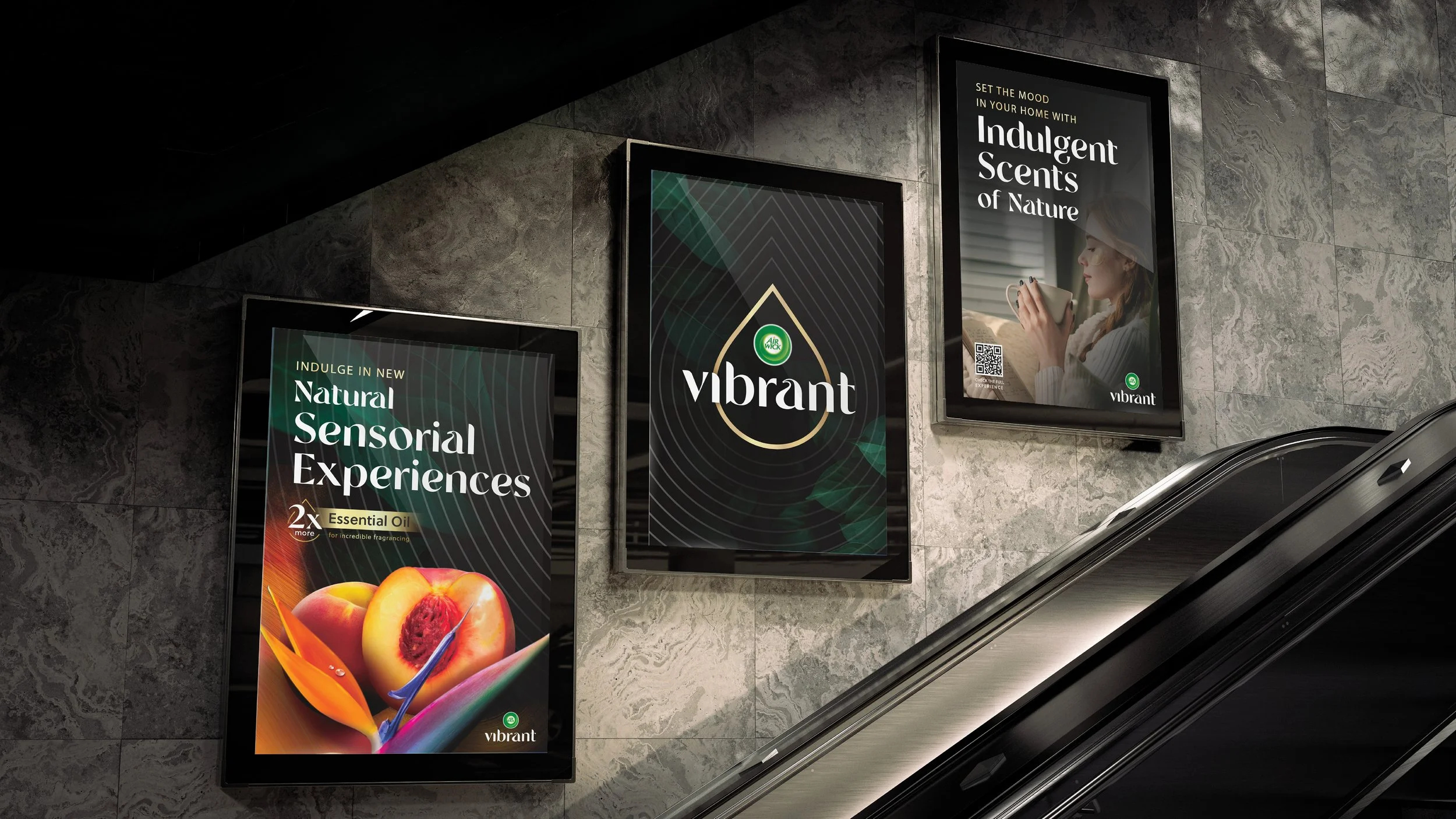 Digital and out-of-home communications were designed to extend the Vibrant brand world beyond the pack, bringing its premium sensorial experience to life in motion and at scale.