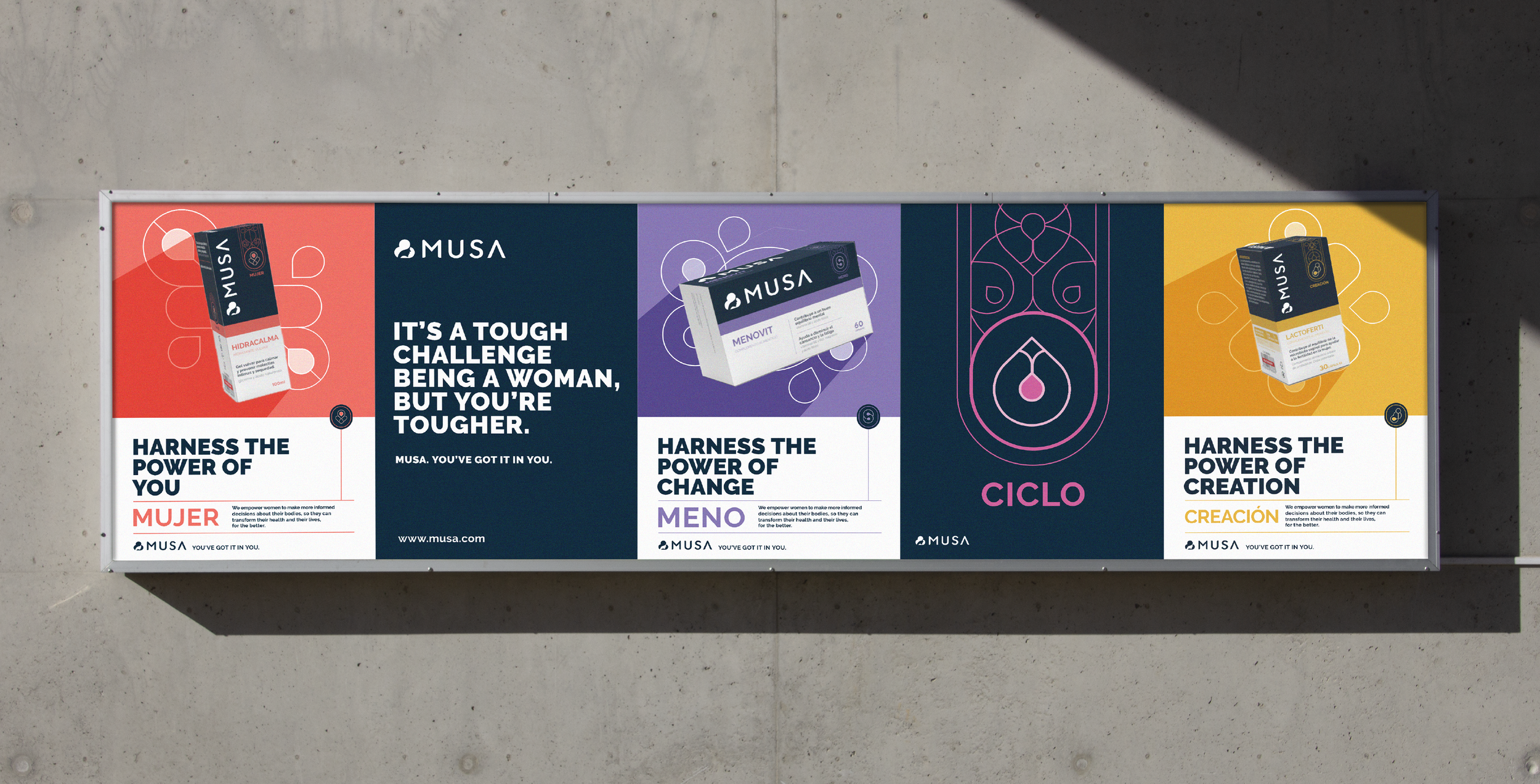 MUSA is a disruptive new brand that is set to revolutionise the category of women’s healthcare, with a stand-out, inspiring positioning and a direct, honest and bold tone of voice.